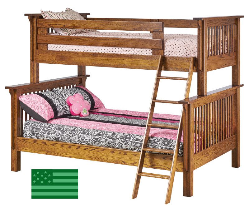 Our Amish Pearce Twin over Full Bunk Bed features one twin & one full size bed that can be used as a bunk bed or used separately. Our Pearce bunk bed is made in the USA and fits one standard twin mattress & one standard full size mattress. This beautiful American made bunk bed is made entirely of solid kiln dried hardwoods grown & harvested responsibly in the USA. Many of its features can be customized; email us if interested in customizing your bunk bed. Hand made in Ohio.