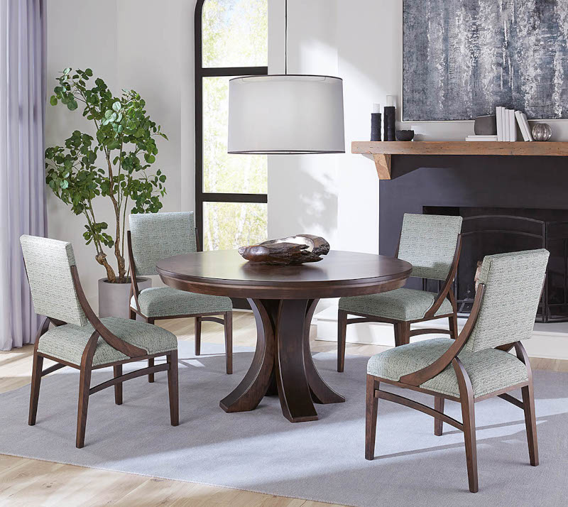 - Dining room images is shown in QSWO with Natural stain (and Ireland fabric)
