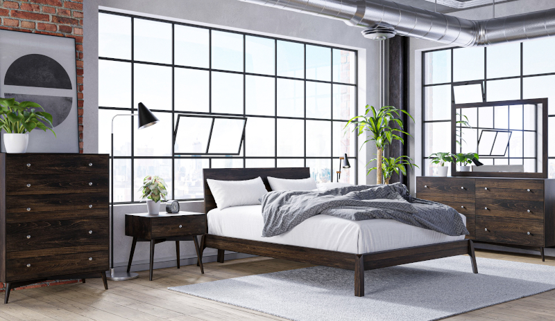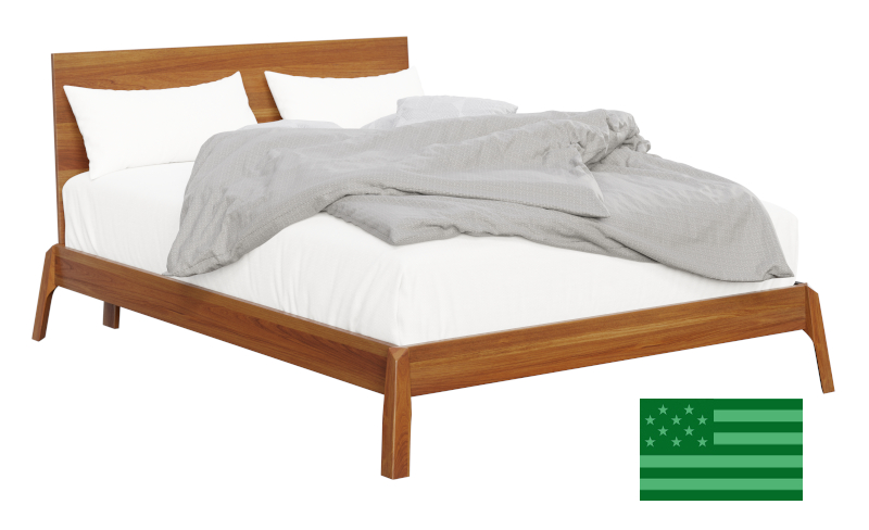 Our Utica Platform Bed, shown here in Sap Cherry with Malaguena stain, is handmade in the USA and artfully combines modern design with traditional Amish woodworking methods. This solid wood platform bed has the hallmarks of heirloom furniture, designed to last several lifetimes and look great all the while. Available in Twin, Twin XL, Full, Queen & King. Email us to discuss customization. Made in Ohio.